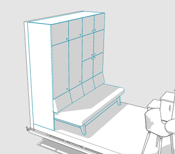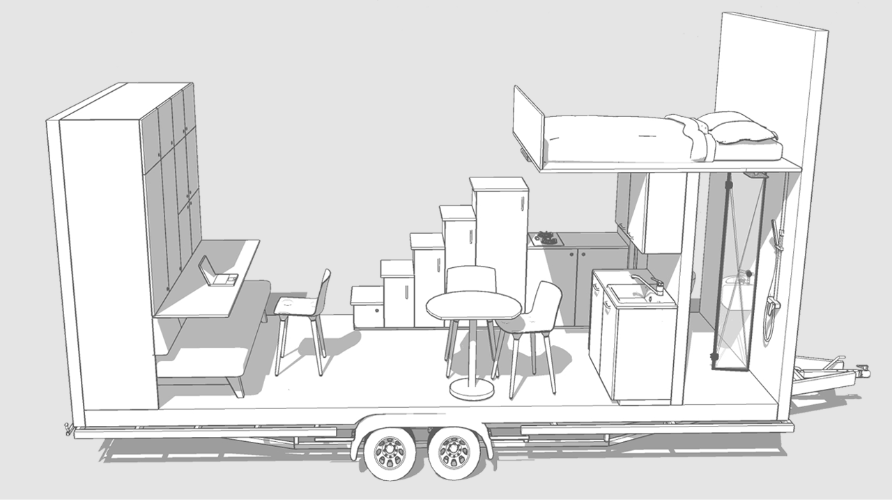 Nasz autorski moduł spełnia funkcje siedzenia, spania, biura oraz posiada ogromną ilość przestrzeni magazynowej. Rozwiązanie chronione zgłoszeniem w urzędzie patentowym.