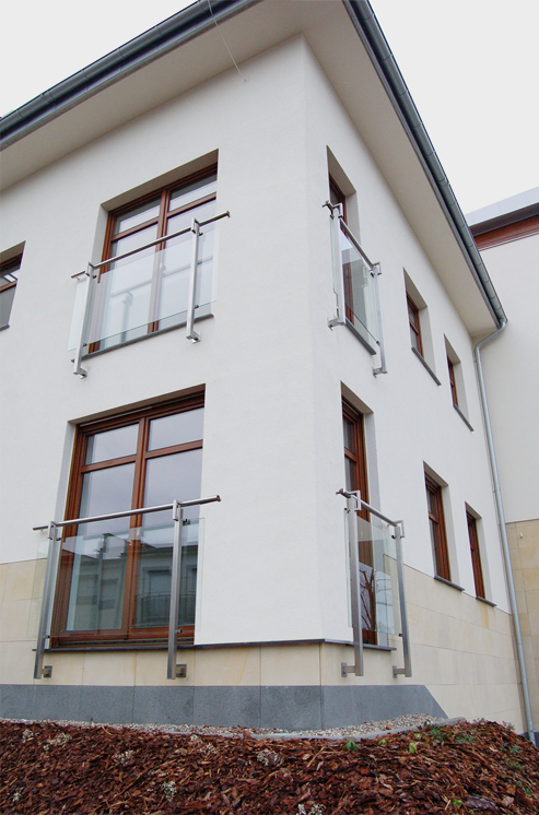 na froncie budynku przy oknach.