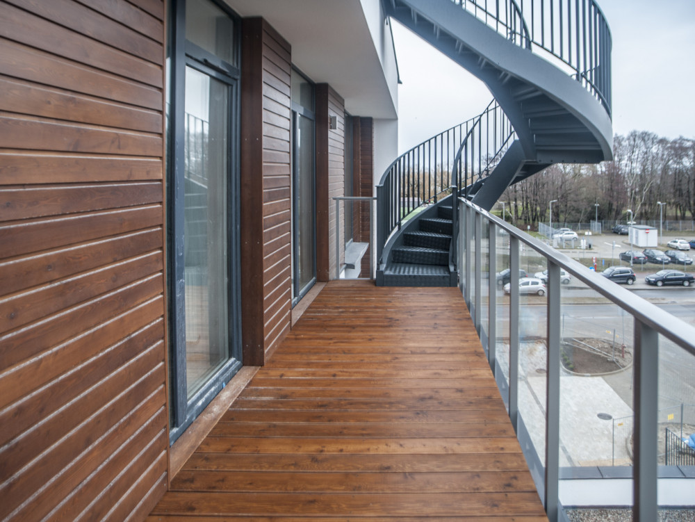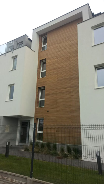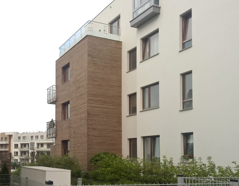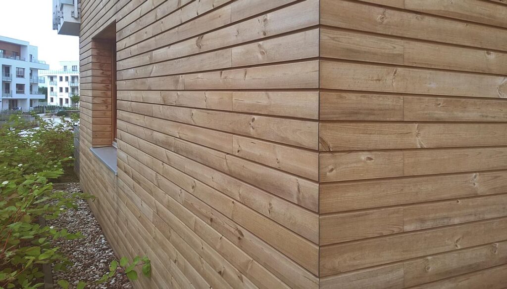 Elewacje drewniane na blokach i budynkach użytkowych
