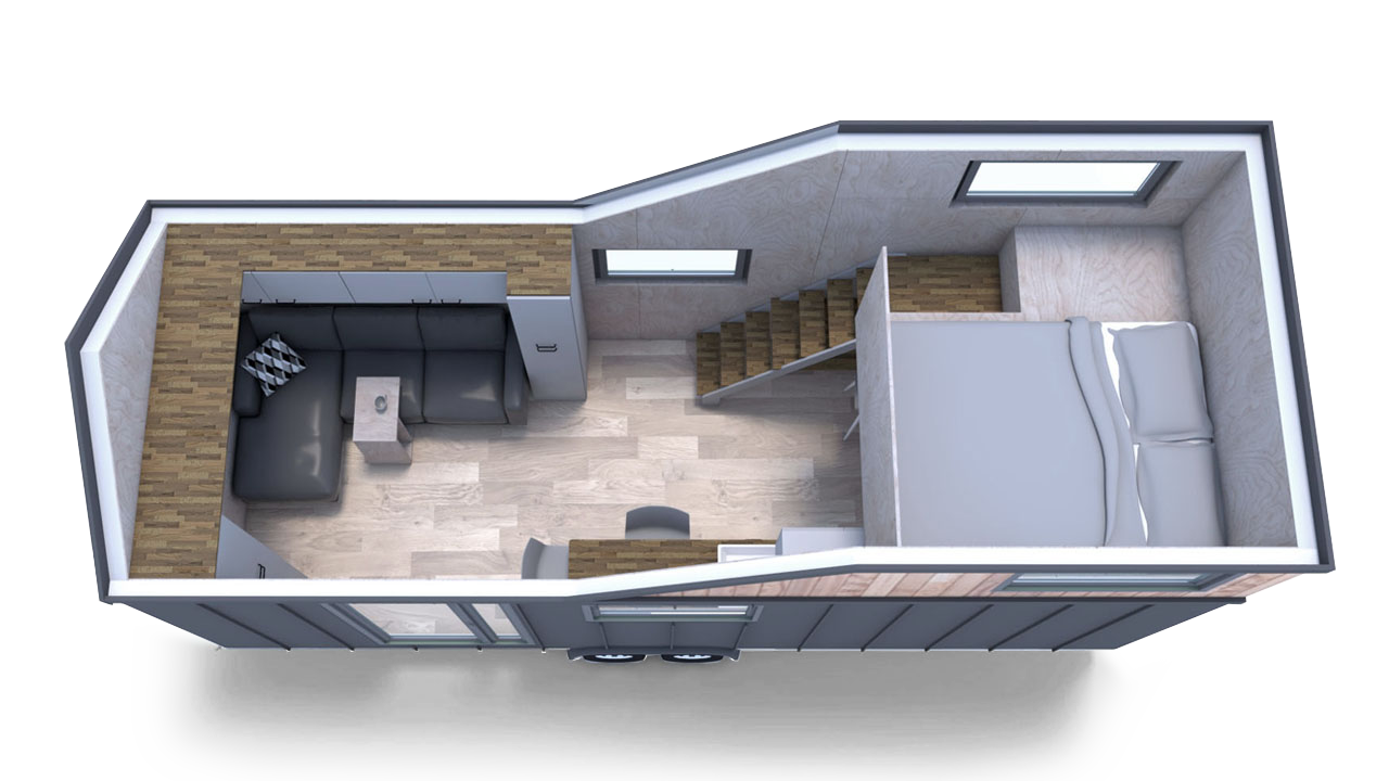 Jednak mała przestrzeń generuje dużo dyskomfortów. Naszą misją jest projektować zoptymalizowane projekty uwzględniające 6 podstawowych funkcji. Spanie, wypoczynek, biuro, kuchnia, łazienka i przestrzeń magazynowa.